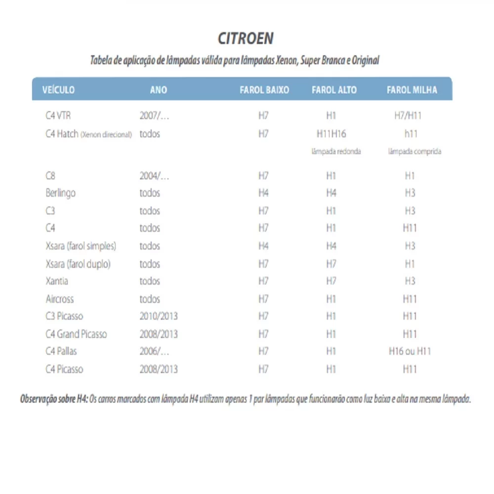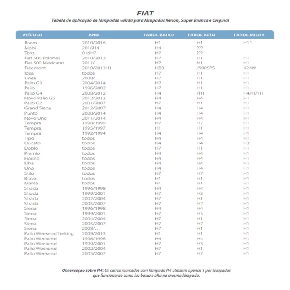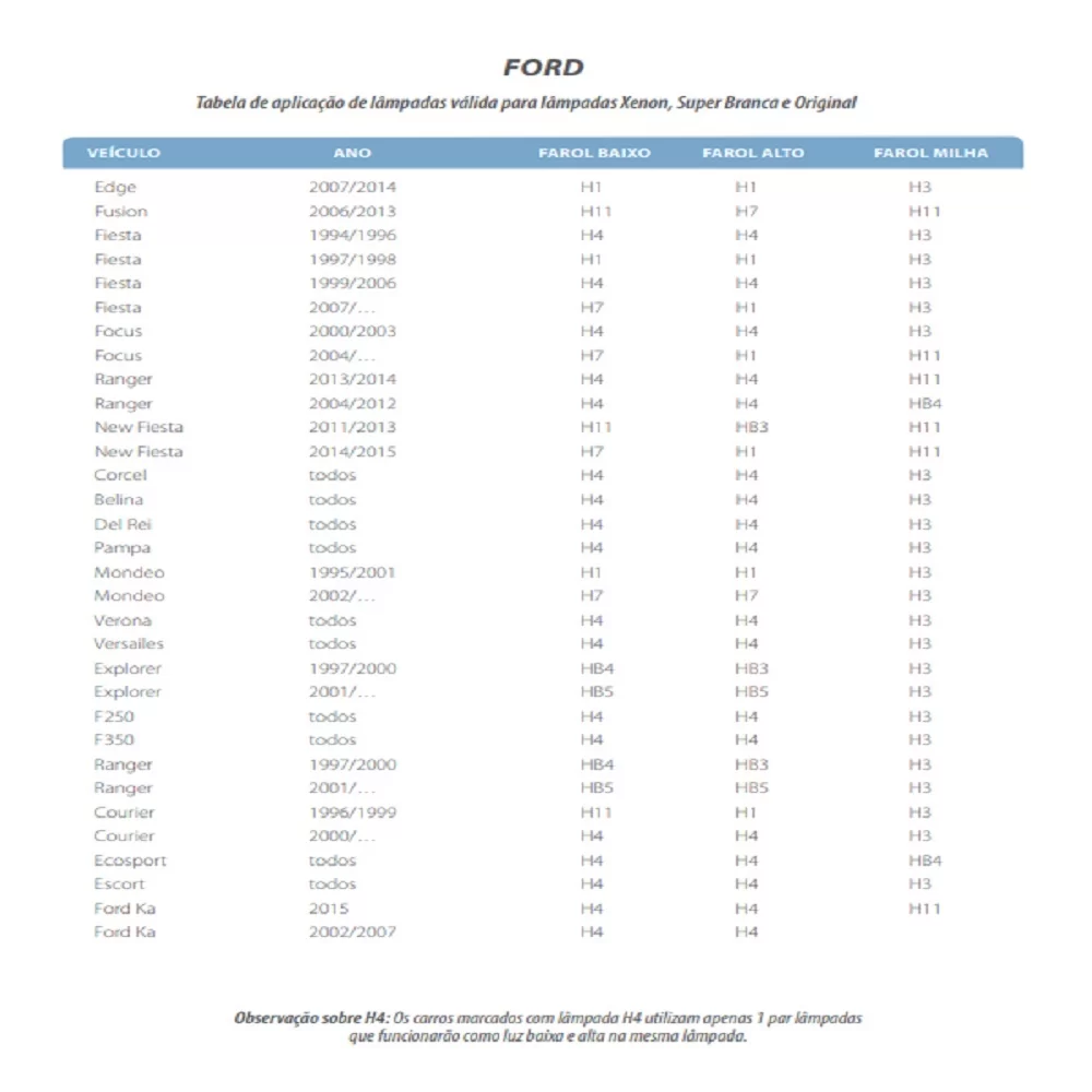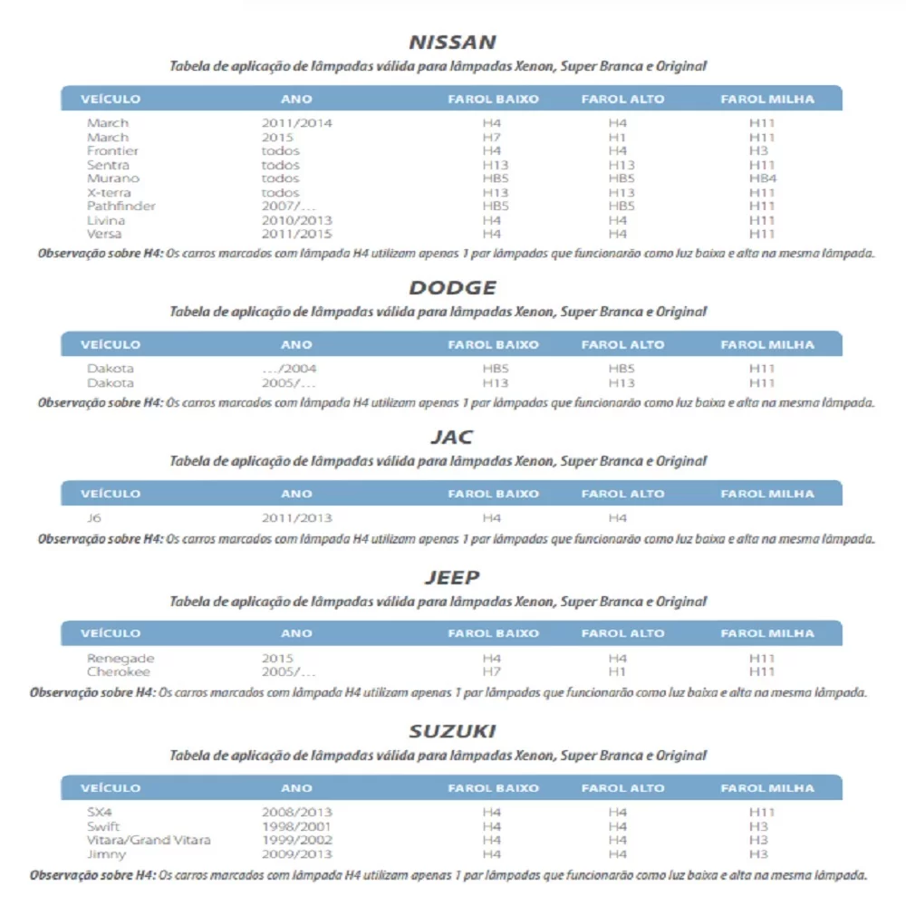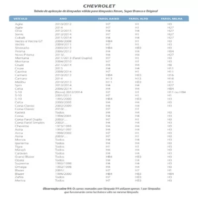 Aplicação para farol baixo nos seguintes carros: