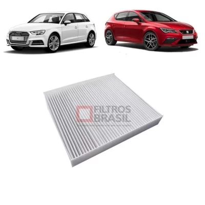 Filtro de Ar condicionado ou Filtro de Ar de Cabine, para os carros AUDI A3, S3 e TT e VOLKSWAGEN - VW GOLF, aplicável para os anos de fabricação de 2013 em diante.